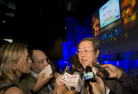 3月28日,中國人民銀行行長周小川(右)在哥倫比亞第二大城市麥德林出席美洲開發(fā)銀行高峰論壇期間接受記者采訪。當(dāng)天,周小川在美洲開發(fā)銀行高峰論壇上發(fā)表主題講話時說,中國加入美洲開發(fā)銀行將進(jìn)一步擴(kuò)大中國和拉美的雙邊合作關(guān)系,雙方不斷深化的友好合作將增強(qiáng)中國和拉美國家共同抵御金融危機(jī)的能力。