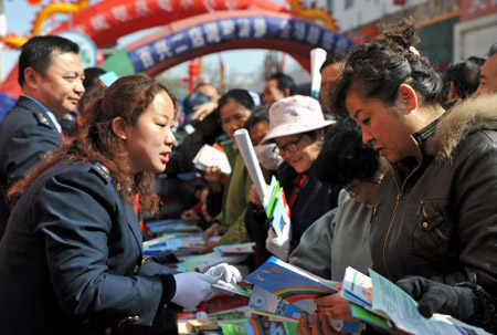 3月29日,稅務(wù)人員(左)在銀川市街頭宣傳講解稅收政策。 當(dāng)日,寧夏第18個(gè)全國(guó)稅收宣傳月活動(dòng)在銀川正式啟動(dòng);顒(dòng)月期間,寧夏稅務(wù)系統(tǒng)將通過稅法進(jìn)校園、進(jìn)社區(qū),舉辦稅收知識(shí)競(jìng)賽,表彰高信用等級(jí)納稅人等活動(dòng),宣傳稅收在經(jīng)濟(jì)、社會(huì)發(fā)展中的地位,增強(qiáng)社會(huì)各界對(duì)稅收工作的理解和支持。 |