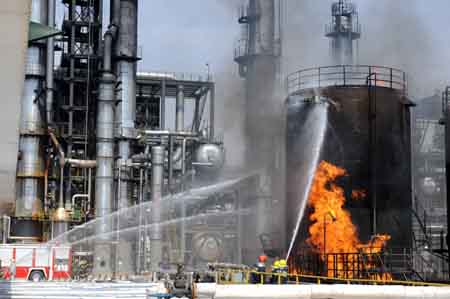 這是消防官兵正在奮力撲救(4月8日攝)。4月8日凌晨4時(shí)30分許,內(nèi)蒙古伊泰集團(tuán)煤間接液化項(xiàng)目基地1號、2號輕質(zhì)油儲油罐發(fā)生火災(zāi)事故,火災(zāi)未造成人員傷亡和關(guān)鍵生產(chǎn)設(shè)備的損毀。截至當(dāng)日16時(shí)10分,明火已被全部撲滅,火勢得到有效控制。