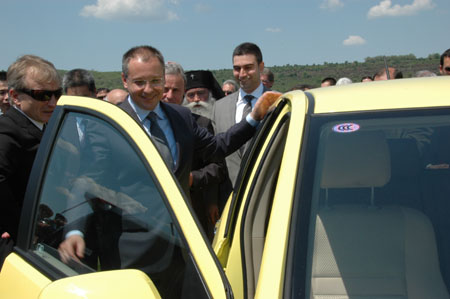 5月11日,中國(guó)長(zhǎng)城汽車(chē)股份有限公司與保加利亞利特科斯汽車(chē)集團(tuán)合作的洛韋奇市汽車(chē)制造廠工廠開(kāi)工儀式,在保舉行。保加利亞總理謝爾蓋·斯塔尼舍夫、中國(guó)駐保加利亞大使張萬(wàn)學(xué)、洛韋奇市市長(zhǎng)卡贊吉耶夫等出席開(kāi)工儀式。開(kāi)工儀式前,斯塔尼舍夫總理(中)興致勃勃地觀看了賽弗炫麗一款長(zhǎng)城汽車(chē)。