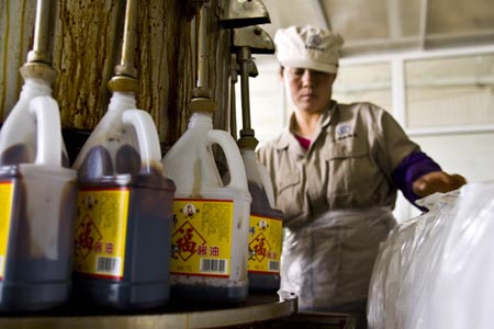 內(nèi)蒙古鄂爾多斯市是我國重要的沙棘產(chǎn)地,沙棘保存面積達300多萬畝,占全國沙棘總面積的70%,被譽為“中國沙棘之都”。隨著多家大型沙棘加工企業(yè)落戶鄂爾多斯東勝區(qū)的沙棘產(chǎn)業(yè)園生產(chǎn)食醋、醬油、飼料等產(chǎn)品,“沙棘產(chǎn)業(yè)鏈”使沙棘種植在發(fā)揮生態(tài)效益的同時也產(chǎn)生出很大的經(jīng)濟效益。每年四季,當?shù)剞r(nóng)民可以從沙棘種植、管理、收獲等環(huán)節(jié)增加收入。圖為工人在內(nèi)蒙古鄂爾多斯市東勝區(qū)天驕沙棘食品有限公司醬油灌裝的車間工作。 |