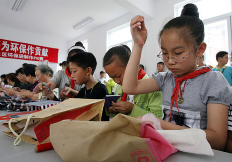 小學生自制環(huán)保袋減少白色污染