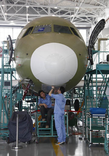 6月6日,一架ARJ21新支線飛機在上海飛機制造有限公司的裝配車間進行總裝。 ARJ21系列飛機是我國第一個外銷歐美發(fā)達(dá)國家的飛機產(chǎn)品,目前國內(nèi)外訂單為208架。其中,美國最大飛機租賃公司通用電氣金融航空服務(wù)有限公司(GECAS)訂購了25架。根據(jù)飛機生產(chǎn)和適航取證的計劃,我國計劃于2010年開始向用戶交付首架飛機。
