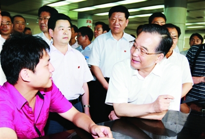 12日,溫家寶在湖南省株洲市人力資源市場進行調(diào)研。