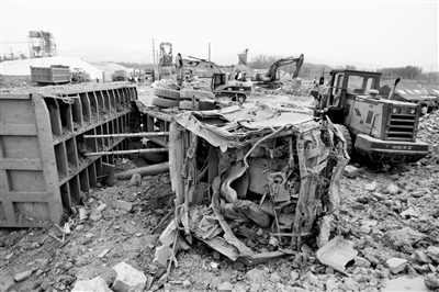 6月21日,一輛被炸毀的大卡車倒在現(xiàn)場(chǎng)。當(dāng)日下午,記者從安徽省鳳陽縣“6·21爆炸事故處理指揮部”了解到,初步認(rèn)定,21日凌晨3時(shí)17分發(fā)生在鳳陽縣晶鑫礦業(yè)有限公司的爆炸事故,是企業(yè)法人私藏炸藥所致。事故目前已造成16人死亡、43人受傷。