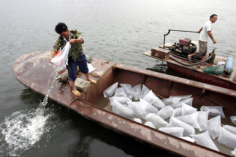 7月5日,2009年黃河流域水生生物增殖放流活動(dòng)在河南黃河小浪底水庫(kù)啟動(dòng),共投放純種黃河鯉魚(yú)、鰱魚(yú)、黃河泥鰍、鳙魚(yú)、黃河鱉等各種水生生物苗種733.5萬(wàn)尾。青海、甘肅、寧夏、內(nèi)蒙古、陜西、山東等黃河流域省(區(qū))也將陸續(xù)開(kāi)展這一大規(guī)模的水生生物增殖放流活動(dòng)。新華社發(fā)