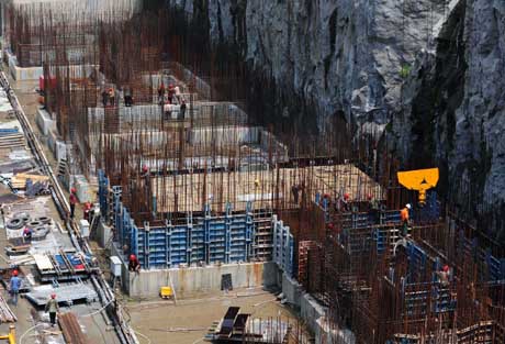 7月16日,工人在對(duì)三峽升船機(jī)塔柱進(jìn)行混凝土澆筑。 日前,三峽升船機(jī)開始塔柱混凝土澆筑,標(biāo)志著三峽升船機(jī)主體工程建設(shè)項(xiàng)目進(jìn)入施工階段。三峽升船機(jī)是三峽大壩的船舶快速過壩通道,由上游引航道、上閘首、船廂室、下閘首和下游引航道組成,過船規(guī)模為3000噸級(jí),最大垂直升降高度113米。