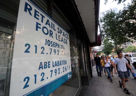 22日,行人從美國紐約曼哈頓一處正在招租的門面房前經(jīng)過。據(jù)《紐約時報》21日報道,隨著紐約居民削減日常開支,紐約街頭的連鎖店、家庭式店鋪等商店已開始逐步減少。而據(jù)全美大型房地產(chǎn)經(jīng)紀(jì)公司馬庫斯·米利切普的統(tǒng)計,曼哈頓地區(qū)目前門面房的空置率達(dá)6.5%,為近20年來最高,預(yù)計到2010年年中將達(dá)10%。