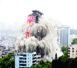 重慶鬧市區(qū)爆破拆除25層爛尾樓