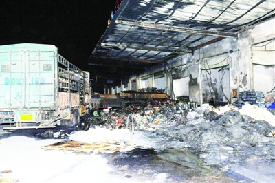 9月3日凌晨拍攝的化學(xué)品爆燃事故現(xiàn)場(chǎng)。9月2日下午,山東省臨沂市蘭山區(qū)金蘭物流城F3區(qū)發(fā)生一起由裝載化學(xué)物品的貨車在卸車過(guò)程中引發(fā)的意外爆燃事故,共造成18人死亡、10人受傷。事故原因正在調(diào)查中。