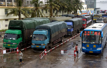 9月14日,車倆滯留在?诟鄣却龔(fù)航。當(dāng)日,2009年第15號熱帶風(fēng)暴“巨爵”逐漸向廣東沿海靠近,受其影響,海南四周海面刮起大風(fēng),海口海事局16時30分下達指令,瓊州海峽全線停航。