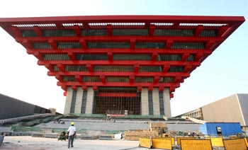 這是9月15日拍攝的建設(shè)中的中國2010年上海世博會中國館。 中國2010年上海世博會中國館正在加緊施工中,工程預(yù)計(jì)將于2009年底前全部竣工。
