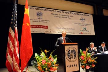 14日,美國商務(wù)部副部長助理蔡瑞德在會(huì)上發(fā)表講話。當(dāng)日,美中經(jīng)貿(mào)投資合作論壇在美國芝加哥舉行,中國貿(mào)促會(huì)副會(huì)長于平率領(lǐng)由167名企業(yè)家組成的中國企業(yè)家代表團(tuán)參加了本次論壇。與會(huì)人士一致呼吁在尚未完全克服經(jīng)濟(jì)危機(jī)的形勢下,中美兩國需進(jìn)一步加強(qiáng)經(jīng)貿(mào)合作,為世界經(jīng)濟(jì)的復(fù)蘇做貢獻(xiàn)。新華社記者胡光耀攝 |