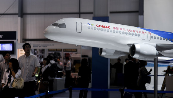9月23日,參觀者在參觀國產(chǎn)大飛機(jī)C919模型。 當(dāng)日,中國航空工業(yè)集團(tuán)公司、中國商用飛機(jī)有限責(zé)任公司等中國航空企業(yè)亮相第十三屆北京國際航空展覽會,所展示的殲8T飛機(jī)、“梟龍”戰(zhàn)機(jī)、“山鷹”高級教練機(jī)模型以及前不久剛剛在香港首次亮相的國產(chǎn)大飛機(jī)C919模型等,引起廣泛關(guān)注。