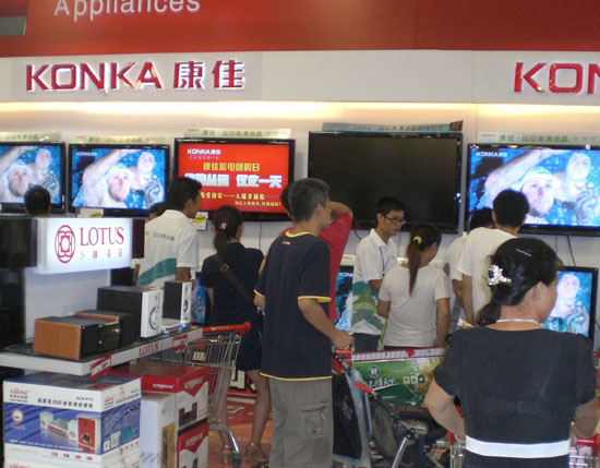 來自一線城市最新統(tǒng)計數(shù)據(jù)表明,十一期間,國產(chǎn)品牌不僅穩(wěn)占平板電視七成江山,而且在LED新品的較量中,也力壓外資品牌。