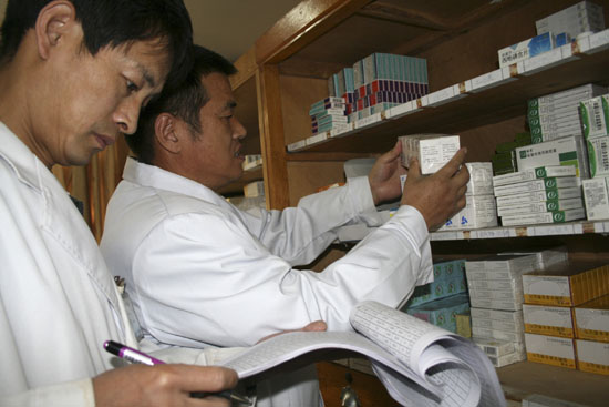 10月21日,在山東省博興縣人民醫(yī)院藥物倉(cāng)庫(kù)內(nèi),工作人員在登記、整理藥品。國(guó)家發(fā)展和改革委員會(huì)公布的國(guó)家基本藥物零售指導(dǎo)價(jià)格將于10月22日正式開始實(shí)行。此次價(jià)格調(diào)整共涉及2349個(gè)具體劑型規(guī)格品,其中,與現(xiàn)行規(guī)定價(jià)格比,有45%的藥品降價(jià),平均降幅12%左右;有49%的藥品價(jià)格未做調(diào)整;有6%的短缺藥品價(jià)格有所提高。