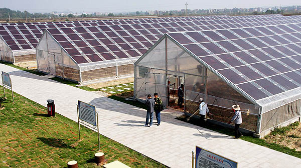 10月26日拍攝的坐落在江西省上饒市沙溪鎮(zhèn)的薄膜太陽能農(nóng)業(yè)大棚。江西首個集有機農(nóng)業(yè)和環(huán)保能源發(fā)電一體化的薄膜太陽能農(nóng)業(yè)大棚發(fā)電系統(tǒng)近日在上饒市建成,并開始試行并網(wǎng)發(fā)電,預計年發(fā)電量15萬千瓦時。