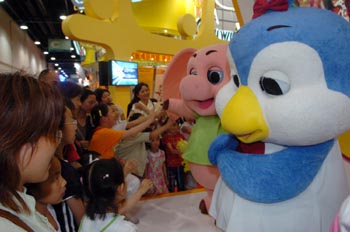 杭州的兩個卡通形象吸引了大批的參觀者。杭州動漫產(chǎn)業(yè)近年來取得跨越式飛速發(fā)展,經(jīng)濟利潤增長顯著,僅今年上半年,動漫游戲衍生產(chǎn)品收入達1620萬元,相當(dāng)于去年同期的近兩倍。目前,杭州已擁有5個國家級動漫基地,動漫企業(yè)135家,從業(yè)人員1萬余人,動畫片年生產(chǎn)總量連續(xù)多年位居全國前列。
