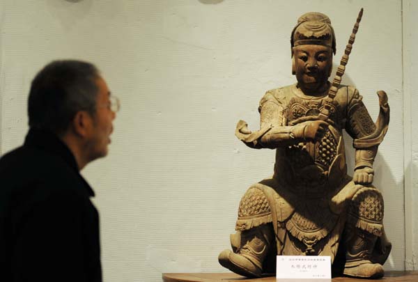 從12月5日開(kāi)始,長(zhǎng)沙首屆民間收藏精品展在長(zhǎng)沙市博物館展出。35位民間收藏家的1000余件收藏品通過(guò)9個(gè)展廳、18個(gè)專題展區(qū)來(lái)展出,展品包括金銀器、青銅器、陶器、玉石器、漆木器、書(shū)畫(huà)、家具、古籍拓本等,年代跨度從商代至近現(xiàn)代,其中不少民間珍寶是首次與觀眾見(jiàn)面,令參觀者大開(kāi)眼界。圖為一位參觀者在參觀明朝“木雕武財(cái)神”。