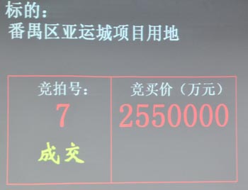 2009年12月22日,農(nóng)歷冬至,然而在廣州市房地產(chǎn)交易中心3樓拍賣大廳卻是一片火熱。 在這里,全國(guó)房地產(chǎn)巨頭齊聚,虎視眈眈,目標(biāo)就是263萬(wàn)平方米的廣州亞運(yùn)城土地。廣州市國(guó)土房管局局長(zhǎng)謝曉丹也破天荒地到場(chǎng)觀戰(zhàn)。拍賣場(chǎng)內(nèi)被觀戰(zhàn)的人群圍得水泄不通。約百家媒體更是架起了長(zhǎng)槍短炮來(lái)見(jiàn)證這一中國(guó)拍地史上的紀(jì)錄。 廣州市國(guó)土房管局公布的資料顯示,亞運(yùn)城地塊位于廣州新城東北部,規(guī)劃總用地面積約264萬(wàn)平方米,地上總建筑面積為438萬(wàn)平方米,規(guī)模龐大。據(jù)統(tǒng)計(jì),今年以來(lái)廣州掛牌出讓了19幅住宅用地,用地面積約146萬(wàn)平方米,僅為亞運(yùn)城項(xiàng)目用地的55%。由于項(xiàng)目開(kāi)發(fā)成本高,房地產(chǎn)企業(yè)紛紛選擇聯(lián)合競(jìng)拍。 15時(shí),3個(gè)競(jìng)拍聯(lián)合體7個(gè)開(kāi)發(fā)商已經(jīng)到齊入座,其中包括富力地產(chǎn)、碧桂園等民營(yíng)地產(chǎn)公司組成的7號(hào)競(jìng)買團(tuán)隊(duì),保利地產(chǎn)、萬(wàn)科地產(chǎn)、中海地產(chǎn)等國(guó)有房地產(chǎn)企業(yè)組成的88號(hào)競(jìng)買團(tuán)隊(duì),以及獨(dú)立競(jìng)買的6號(hào)中信地產(chǎn)。 起拍價(jià)為180億元,競(jìng)價(jià)階梯為2億元,也即舉一次牌就要多付出2億元,也意味著舉一次牌就要增加樓面地價(jià)61元/平方米。然而競(jìng)拍開(kāi)始之后,單刀赴會(huì)的中信地產(chǎn)卻一直未舉牌,爭(zhēng)奪就在7號(hào)富力聯(lián)合體與88號(hào)保利聯(lián)合體之間進(jìn)行。 “200億元!”開(kāi)拍幾分鐘之后,88號(hào)保利聯(lián)合體率先叫價(jià)至200億元。這是業(yè)界專家猜測(cè)的價(jià)位,這也是一個(gè)心理價(jià)位。 “下一個(gè)價(jià)位202億元,或者你喊出高于202億元也行!迸馁u師試圖鼓勵(lì)舉牌。顯然,這場(chǎng)拍賣中,由地產(chǎn)商組成的3大競(jìng)拍聯(lián)合體并非是游戲的全部角色,希望將土地賣個(gè)好價(jià)錢的地方政府也是一個(gè)重要的扮演者。 在短暫的靜默與期待之后,富力聯(lián)合體繼續(xù)叫價(jià),一舉打破了業(yè)內(nèi)心理關(guān)口,并引發(fā)全場(chǎng)鼓掌。在富力聯(lián)合體將地價(jià)叫到255億元的時(shí)候,保利聯(lián)合體不再繼續(xù)叫價(jià)!255億元第一次……255億元第二次……255億元第三次,成交!”伴隨著一聲響亮的棰聲,亞運(yùn)城項(xiàng)目在歷時(shí)半個(gè)鐘頭經(jīng)過(guò)47輪叫價(jià)之后被富力聯(lián)合體競(jìng)得。