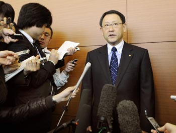 2月19日,豐田汽車公司總裁豐田章男在日本名古屋接受記者采訪。當(dāng)日,豐田章男表示,他將出席美國國會眾議院監(jiān)督和政府改革委員會24日就豐田召回問題舉行的聽證會,“誠心誠意”聽取意見,直接作出說明,讓美國人“理解豐田的想法”。新華社/共同社 |