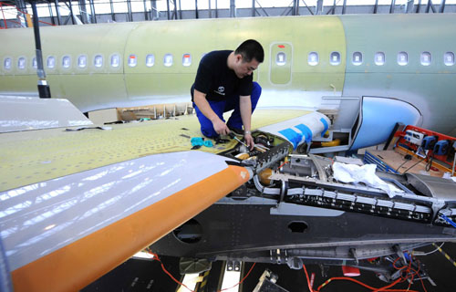 3月16日,空客天津總裝廠的技術(shù)人員在測(cè)試由中航西飛總裝的首對(duì)空客A320機(jī)翼。 當(dāng)日,由中航西飛完成總裝的首對(duì)空客A320機(jī)翼在空客天津總裝廠成功實(shí)現(xiàn)與機(jī)身對(duì)接。機(jī)翼質(zhì)量及制造水平獲得了用戶的肯定。