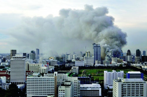 這是5月19日,泰國首都曼谷的世貿(mào)中心冒出滾滾濃煙。