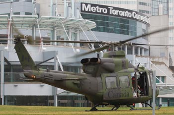 在加拿大城市多倫多,一架軍用直升機在G20峰會會場附近草坪上等待執(zhí)行巡邏任務。新華社發(fā)(鄒崢
