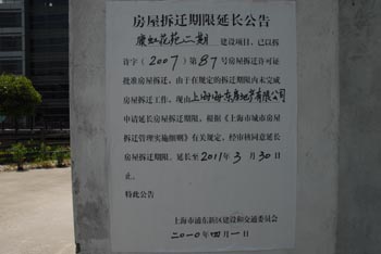 該項(xiàng)目的房屋拆遷期限延長公告。記者 李新民 攝 |