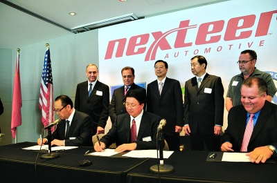 7月12日,中國北京太平洋世紀汽車有限公司與美國通用汽車公司正式簽約,收購通用旗下全球轉向與傳動業(yè)務NEXTEER。按照計劃,收購將于今年第四季度完成。屆時,太平洋世紀汽車公司將擁有NEXTEER100%的股權,并獲得其全球最先進的轉向與傳動技術、產(chǎn)業(yè)經(jīng)驗和客戶資源,從而成為全球頂級轉向與傳動系統(tǒng)供應商。這是迄今為止中國汽車零部件企業(yè)在海外最大的一項收購活動。 上圖:當天,中國北京太平洋世紀汽車有限公司與美國通用汽車公司在美國底特律通用汽車總部舉行簽約儀式。 下圖:2010年7月12日在通用汽車總部大樓內(nèi)拍攝的GMC汽車方向盤。 |
