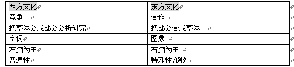 這是本書中闡述了東西方的兩極對比,我選了以下一些放在一個(gè)表格中。