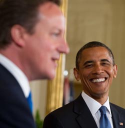 7月20日,在美國首都華盛頓白宮,美國總統(tǒng)奧巴馬(右)與到訪的英國首相卡梅倫會談后出席聯(lián)合新聞發(fā)布會。 最近,英國石油公司由于墨西哥灣漏油事件以及被懷疑就釋放洛克比空難制造者進(jìn)行游說而飽受美國朝野批評,卡梅倫試圖借此次訪問平息這一重要盟友的憤怒。