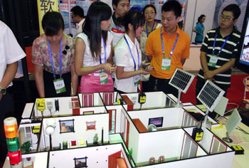 9月5日,參觀者在南京舉行的國際軟件產(chǎn)品博覽會展廳觀看“智能家居”物聯(lián)網(wǎng)模型。物聯(lián)網(wǎng)如今已成為國內(nèi)各大科技展的熱點(diǎn)。新華社記者 王啟明/攝 |