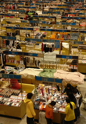 記者在大唐輕紡襪業(yè)城看到,這里簡直就是一個襪子的海洋,1000余間營業(yè)房和500多個展位集中經營著輕紡原料、襪子、襪機、各種配件以及物流,成為了國內外襪業(yè)原料和襪機制造商最重要的銷售基地和信息中心,美國杜邦、德國拜耳、日本伊藤忠等近20多家世界500強企業(yè)在大唐設立了銷售代理機構。