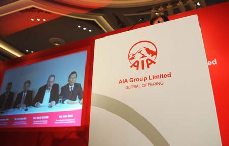 美國(guó)國(guó)際集團(tuán)(AIG)旗下的亞洲人壽保險(xiǎn)公司友邦保險(xiǎn)(AIA)17日在香港宣布啟動(dòng)首次公開(kāi)募股。友邦保險(xiǎn)計(jì)劃發(fā)行58.6億股,有望集資高達(dá)1153億港元,成為今年以來(lái)香港集資額度最大的首次公開(kāi)募股之一。友邦保險(xiǎn)總裁馬克·塔克(屏幕右二)17日在美國(guó)通過(guò)實(shí)時(shí)視頻向媒體表示,未來(lái)5年亞太區(qū)保險(xiǎn)產(chǎn)品的市場(chǎng)增長(zhǎng)潛力無(wú)與倫比。