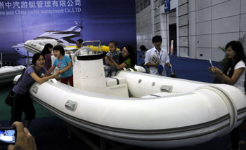 中秋假期,福州海峽國(guó)際會(huì)展中心同時(shí)舉行了第十六屆福州國(guó)際汽車(chē)展和中國(guó)(福州)首屆國(guó)際游艇展覽會(huì),展廳內(nèi)豪華汽車(chē)和游艇同臺(tái)展示競(jìng)奢華,吸引了大量參觀者。記者