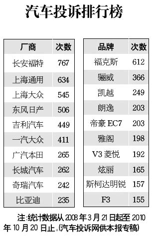 汽車投訴長安福特高居榜首
