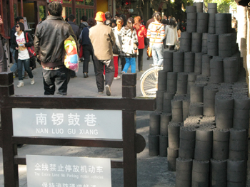 北京市東城區(qū)南鑼鼓巷居民已為嚴冬備好蜂窩煤。本報記者 唐師曾/攝 |
