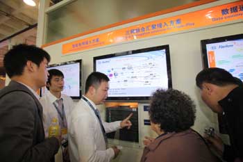 10月12日,在北京舉行的國際信息通信展覽會上,工作人員向觀眾介紹“三網(wǎng)融合”系統(tǒng)。目前艱難推進的三網(wǎng)融合期待實質(zhì)性的破冰之舉。新華社 陳曉根/攝 |