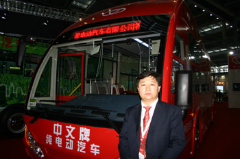 日前在深圳召開的第25屆世界電動車大會上,來自山東沂蒙老區(qū)的沂星電動汽車有限公司,攜多輛純電動客車參展,成為展會上的一大亮點,中央政治局委員汪洋、全國政協(xié)副主席、科技部部長萬鋼等紛紛在展臺前駐足觀看。公司總裁賈秉成興奮地說:“只要是真正的節(jié)能環(huán)保產(chǎn)品,就一定會受到明星般的追捧。”展會現(xiàn)場,他愉快地接受了新華社《經(jīng)濟(jì)參考報》記者的專訪。