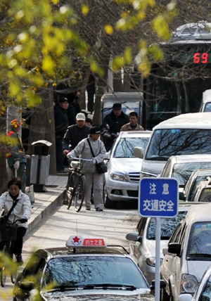 記者在北京、天津等城市調(diào)查發(fā)現(xiàn),自行車在路權(quán)上的弱勢都普遍存在。例如北京,除了一些干路有自行車道外,很多次干路和支路都沒有自行車專用道,而且不少自行車道被機(jī)動車占用,行人、自行車、機(jī)動車混行現(xiàn)象非常嚴(yán)重,存在很大的安全隱患。