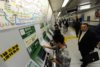 東京車(chē)站,乘客在自助購(gòu)買(mǎi)車(chē)票。四通八達(dá)的軌道交通是日本人平時(shí)出行的首選。記者 季春鵬/攝 |