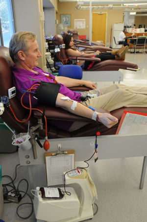 近日,記者在加拿大血液服務(wù)中心設(shè)在溫哥華市奧克街的獻(xiàn)血中心采訪(fǎng),看到該獻(xiàn)血中心剛開(kāi)門(mén)兩個(gè)多小時(shí),就接待了10多位事先預(yù)約或直接上門(mén)的獻(xiàn)血者。45歲的建筑工人德林·道爾胸前貼著“首次獻(xiàn)血者”標(biāo)簽。他說(shuō),這其實(shí)不是他生平第一次獻(xiàn)血,而是他近八九年來(lái)第一次獻(xiàn)血。他曾經(jīng)在幾年時(shí)間里獻(xiàn)血30多次,由于高血壓而不得不暫停獻(xiàn)血,F(xiàn)在他的血壓已經(jīng)得到了控制,所以他可以“復(fù)出”了。他絲毫不認(rèn)為繼續(xù)獻(xiàn)血會(huì)有損他的健康。他表示,他之所以獻(xiàn)血,是因?yàn)檫@可以幫助挽救他人的生命。從獻(xiàn)血臺(tái)下來(lái),德林到一旁的休息區(qū)喝了點(diǎn)果汁,吃了兩塊餅干,然后離去。