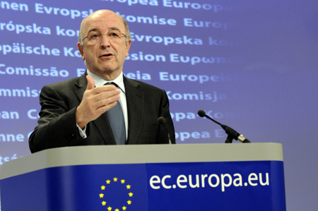 歐盟委員會1日數(shù)據(jù)顯示,27個歐盟成員國在2008年10月至2010年10月的兩年中,一共為其銀行業(yè)提供了高達(dá)4.5萬億歐元的資金,其中3/4的資金以國家貸款或擔(dān)保的形式發(fā)放。圖為歐盟委員會競爭事務(wù)負(fù)責(zé)人華金·阿爾穆尼亞在發(fā)布會上。