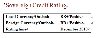 both the local and foreign currency long term sovereign credit ratings of the