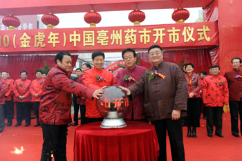 自清末開(kāi)始,國(guó)內(nèi)領(lǐng)銜藥市便沿襲“同仁堂不到不開(kāi)市”的傳統(tǒng),后來(lái)由于種種原因中斷。2003年,北京同仁堂決定恢復(fù)這一傳統(tǒng)儀式,并把地點(diǎn)選在了亳州中藥材交易中心。亳州藥市也贏得了“天下第一藥市”的美譽(yù)。