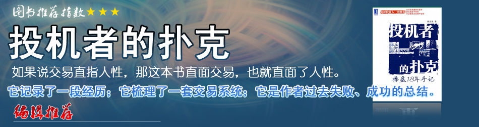我做過很多實(shí)業(yè),也做過多年股票,這本《投機(jī)者的撲克》我讀過一遍之后,更覺得是本可以反復(fù)閱讀的好書。 |