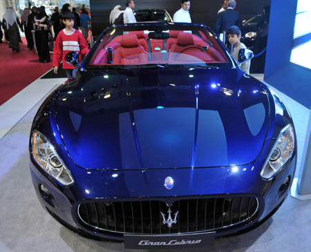 日前,科威特2010國際車展在科威特國際展覽中心舉行,共有20多家汽車和摩托車廠商參加本次展覽。圖為參觀者在瑪莎拉蒂展臺前參觀。