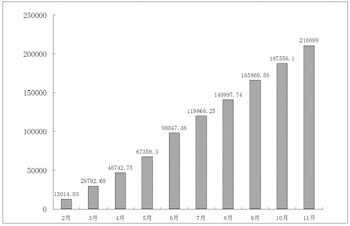 | 前11個月固定資產(chǎn)投資完成情況(月度累計,單位:億元) |