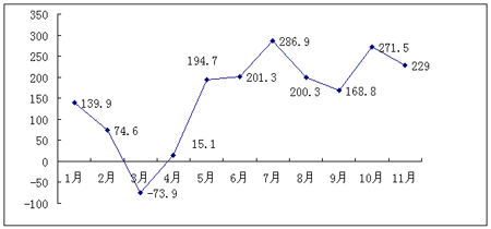 1至11月我國貿(mào)易順差